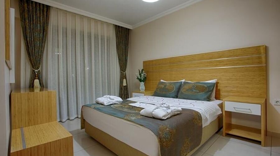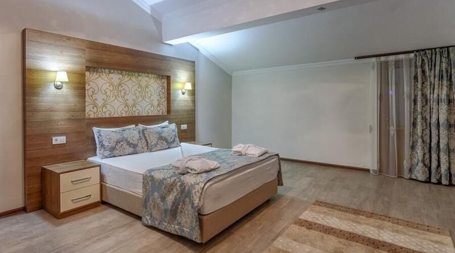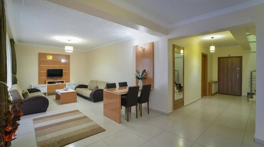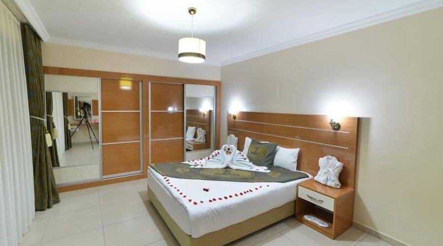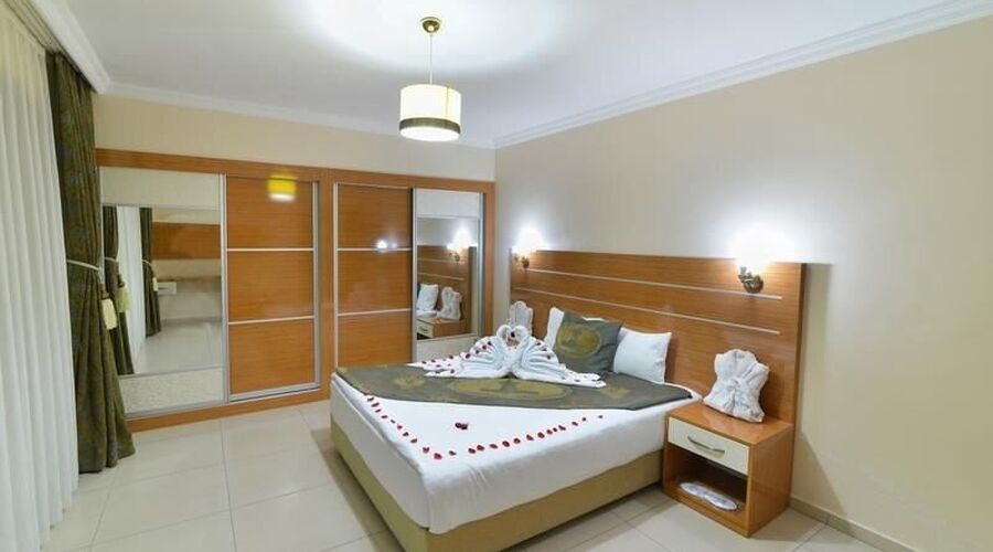Yatak odasında çift kişilik yatak, Ek odada 2 adet tek kişilik yataklar ve Salon bölümünde 2 adet çek-yat mevcuttur.