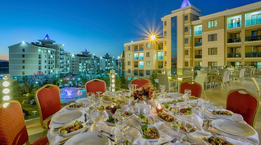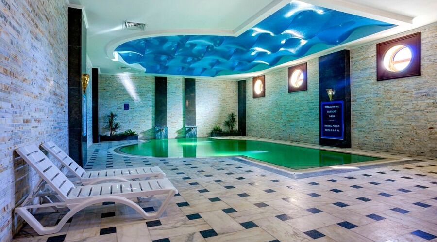 Yemek: Açık büfe restoran, rahat alakart restoran ve bar yer alır. Havuz: Termal spa alanında masaj, güzellik uygulamaları, saunalar, spor tesisleri, açık ve kapalı havuzlar bulunur.