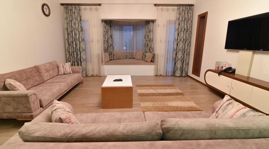 Otel odalarımızda: Modern ve sade dairelerde oturma odası, mini mutfak, yemek masası ve çamaşır makinesi bulunur. Tüm odalarda düz ekran TV, internet erişimi ve ısıtmalı zemin bulunur; 3 yatak odalı villalarda teras ve termal küçük havuzlar bulunur.